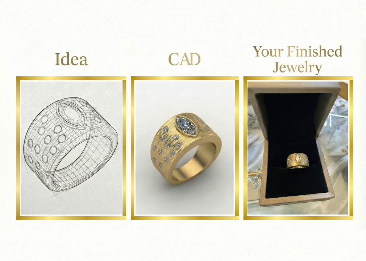 The Reality — Once approved, our master jewelers bring the design to life on-site, ensuring a flawless finish.